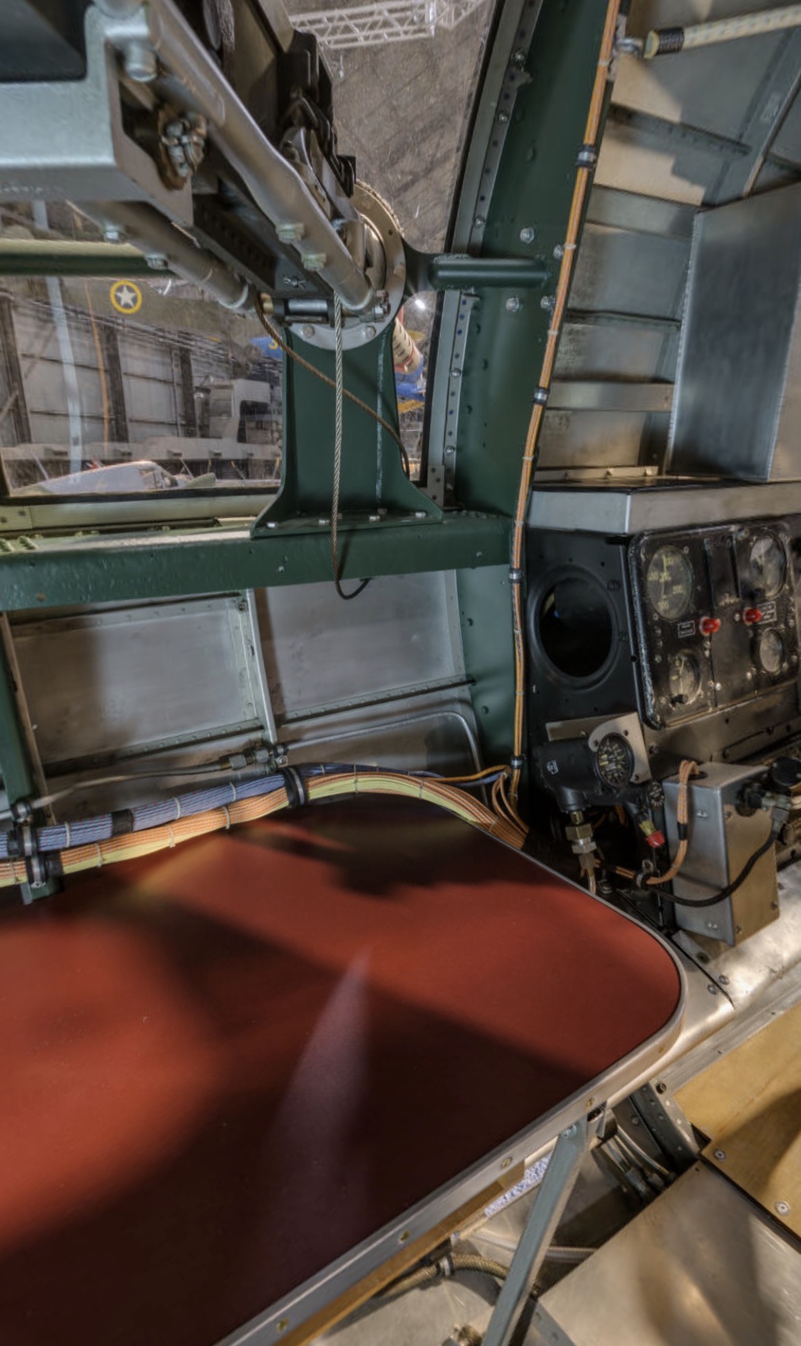 The radio compartment is missing its fabric and insulation, a concession made to ensure the project was completed before its premiere date. Covid-19 in particular played havoc with getting everything done in time. Another minor inaccuracy is the radio operator’s seat, which should be unpainted, and the lack of a placard behind the radio call light. Otherwise, this area is quite accurately done.