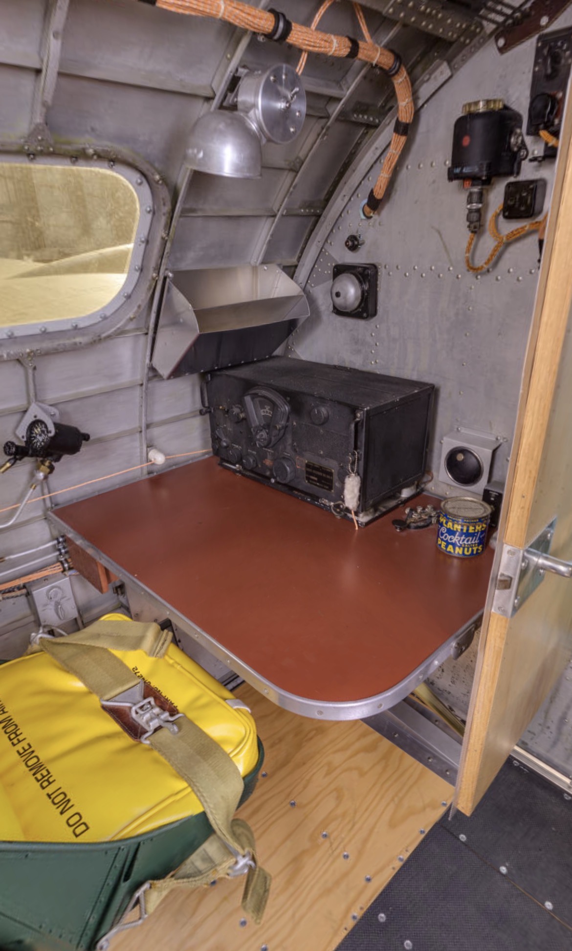 A photo taken aboard Memphis Belle as restored by the National Museum of the US Air Force. The linoleum we provided can be see here on the radio operator’s table.