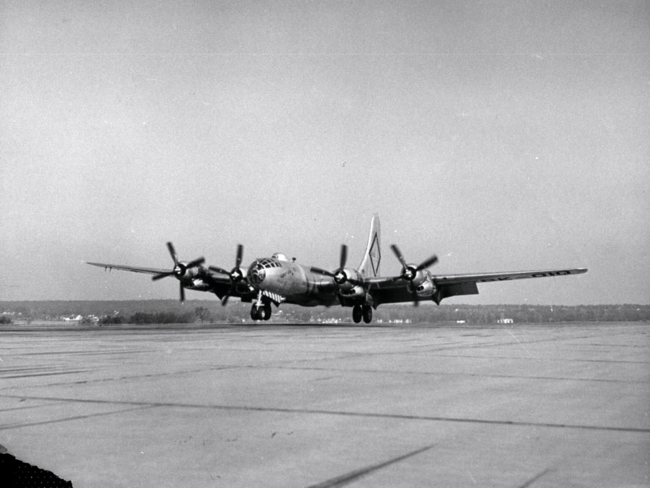 A demonstration of the USAF’s ability to counter the Soviet Union, the Boeing B-50 (a reengined B-29, originally designated the B-29D) took off from Carswell AFB, Texas on 26 February 1949, heading east. She returned to Carswell on 2 March, having covered 23,452 miles and being mid-air refueled four times by KB-29 tankers.