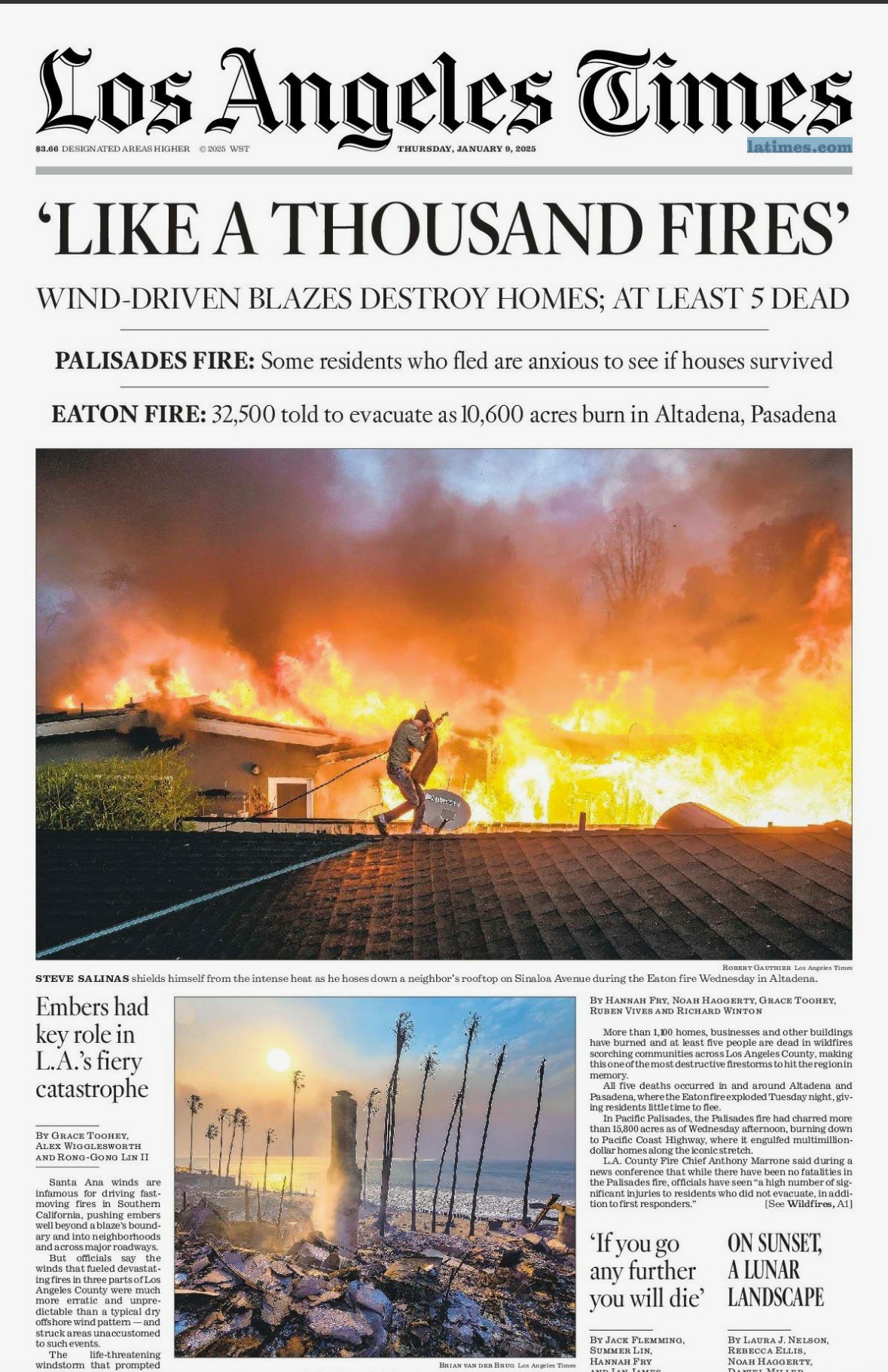 Steve made the front page of the LA Times. That’s him in the photo, trying to save his neighbor’s house.