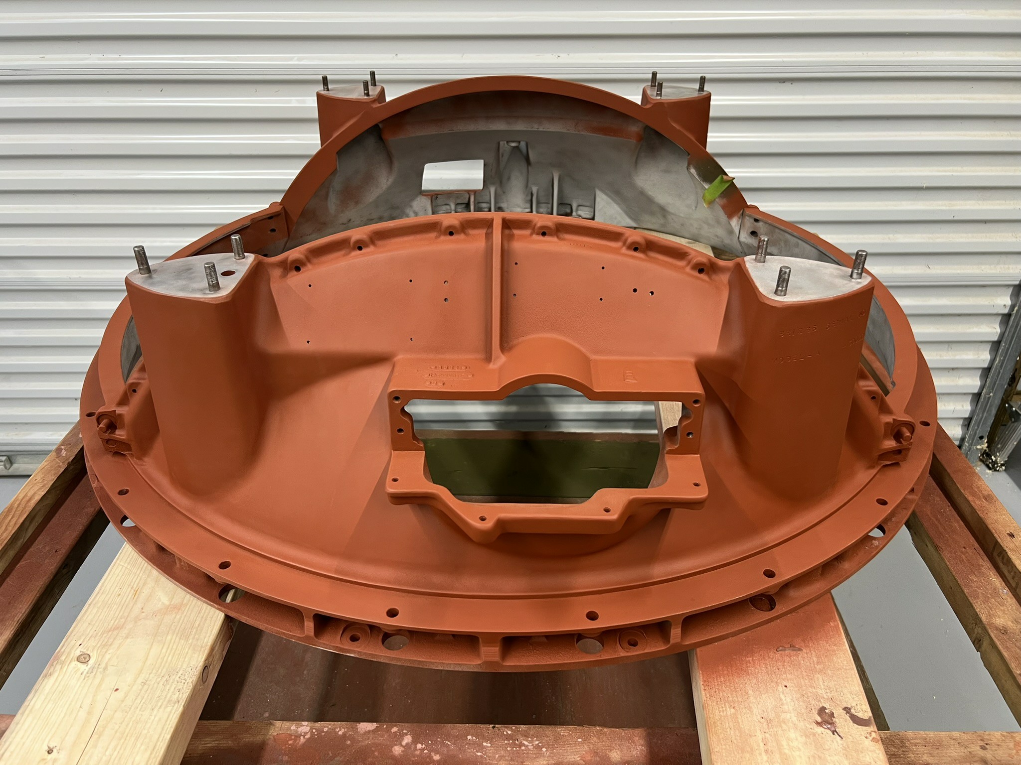 Examining the trunnion, Briggs’ use of primer was inconsistent, being brown in some in places and completely absent in others. We elected to use red oxide primer (which has a brown color) on the trunnion as a whole to ensure better adhesion of the final paint. Briggs-built ball turrets had olive drab trunnion and hanger assemblies and, when ready, this one too will have its original color restored.