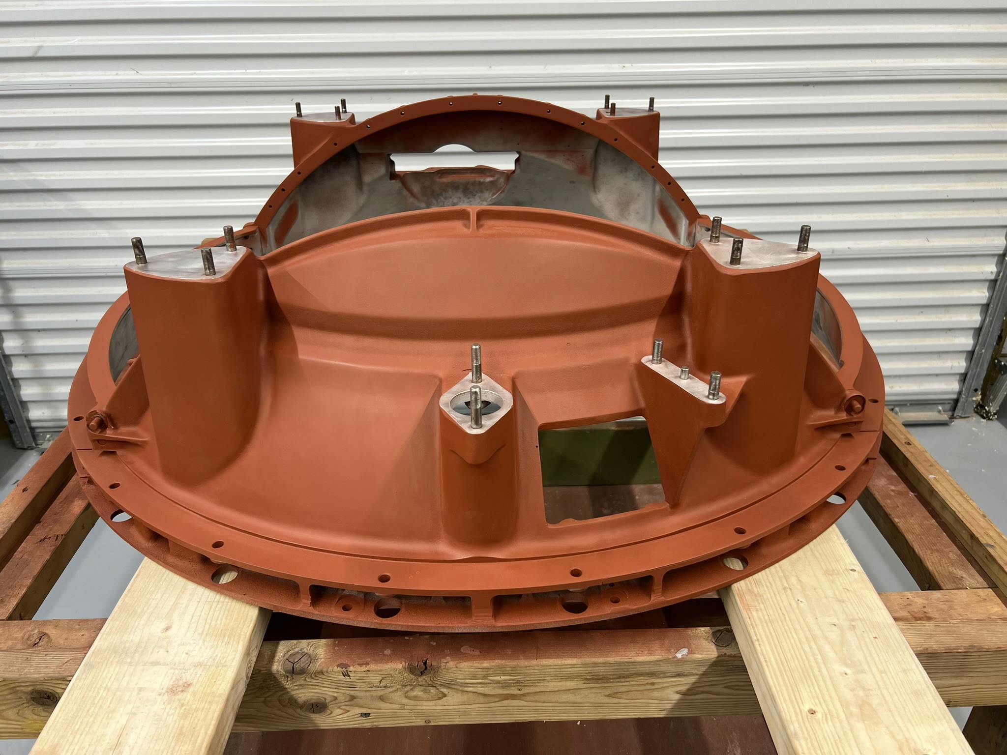 Priming of the exterior is completed and it wont be long that the interior will be similarly finished. Once it is painted and its attachments mounted back on, the next major step will be the restoration of the hanger assembly, with its prominent missing leg.