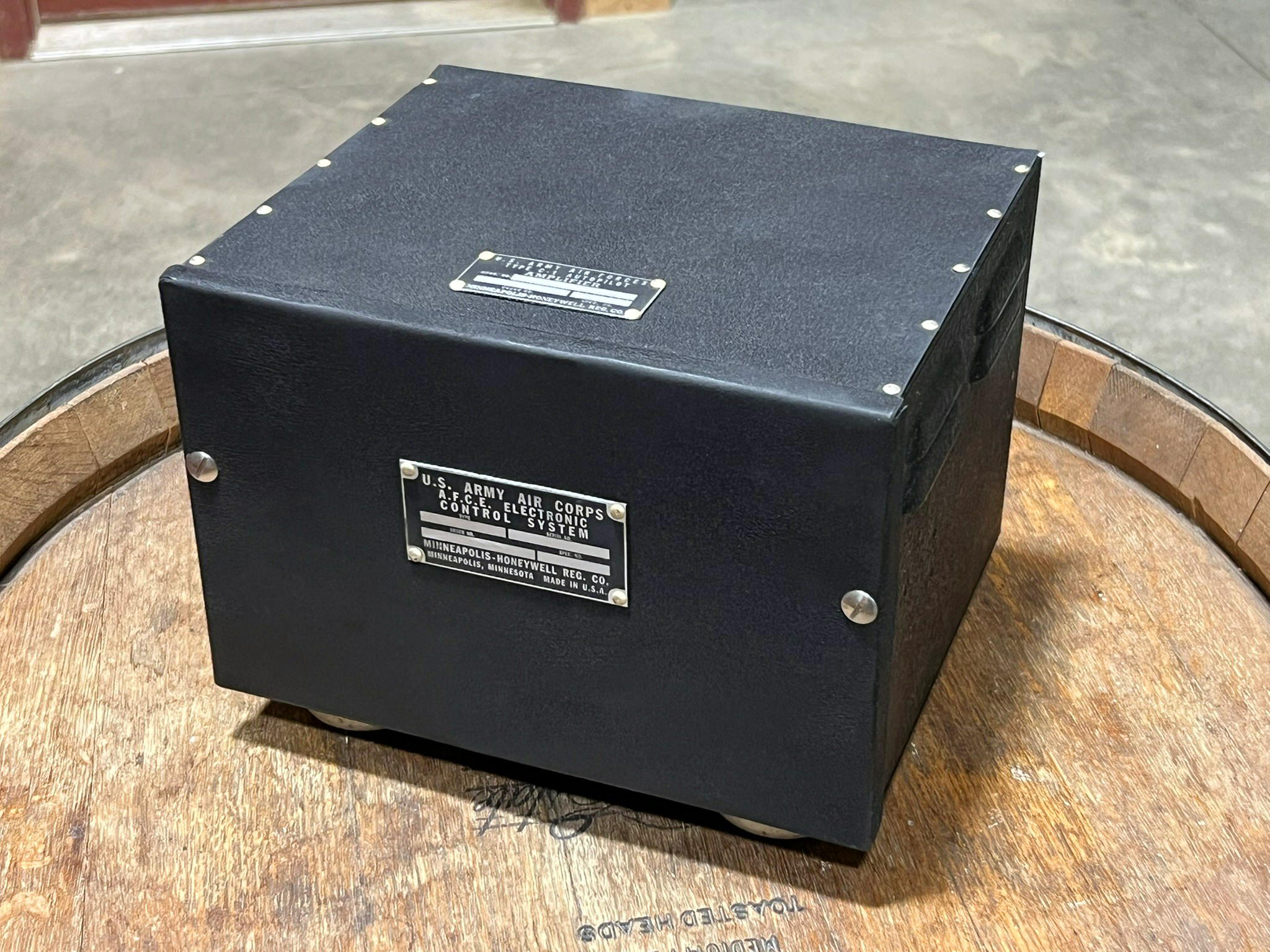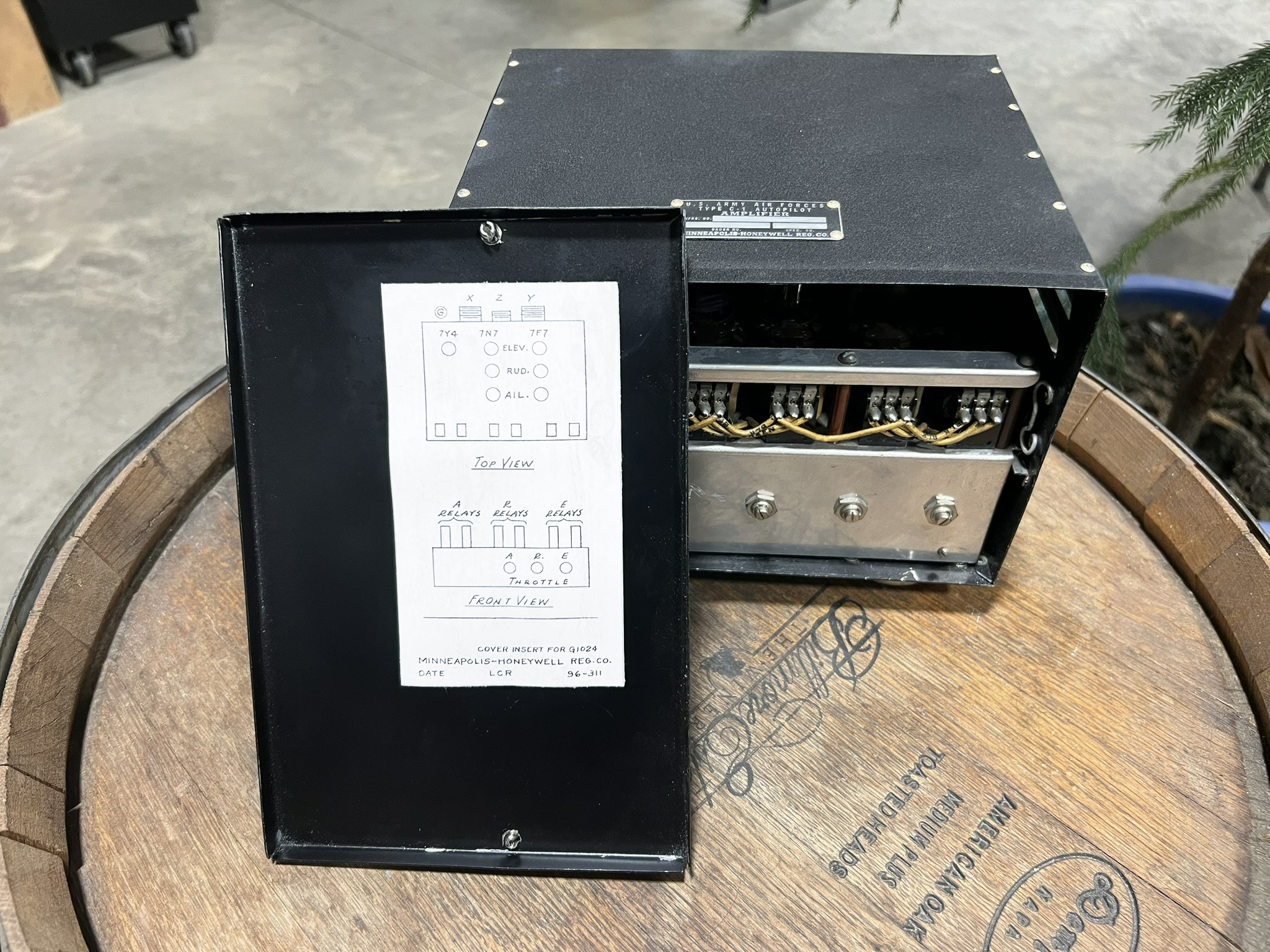 In 2021 we were able to acquire the amplifier box for Lucky Thirteen‘s Type C-1 Autopilot System. Said amplifier was missing the lid and side-cover assemblies, and thanks to our good friend Dom Serong, we were able to replicate them and the paper insert inside.