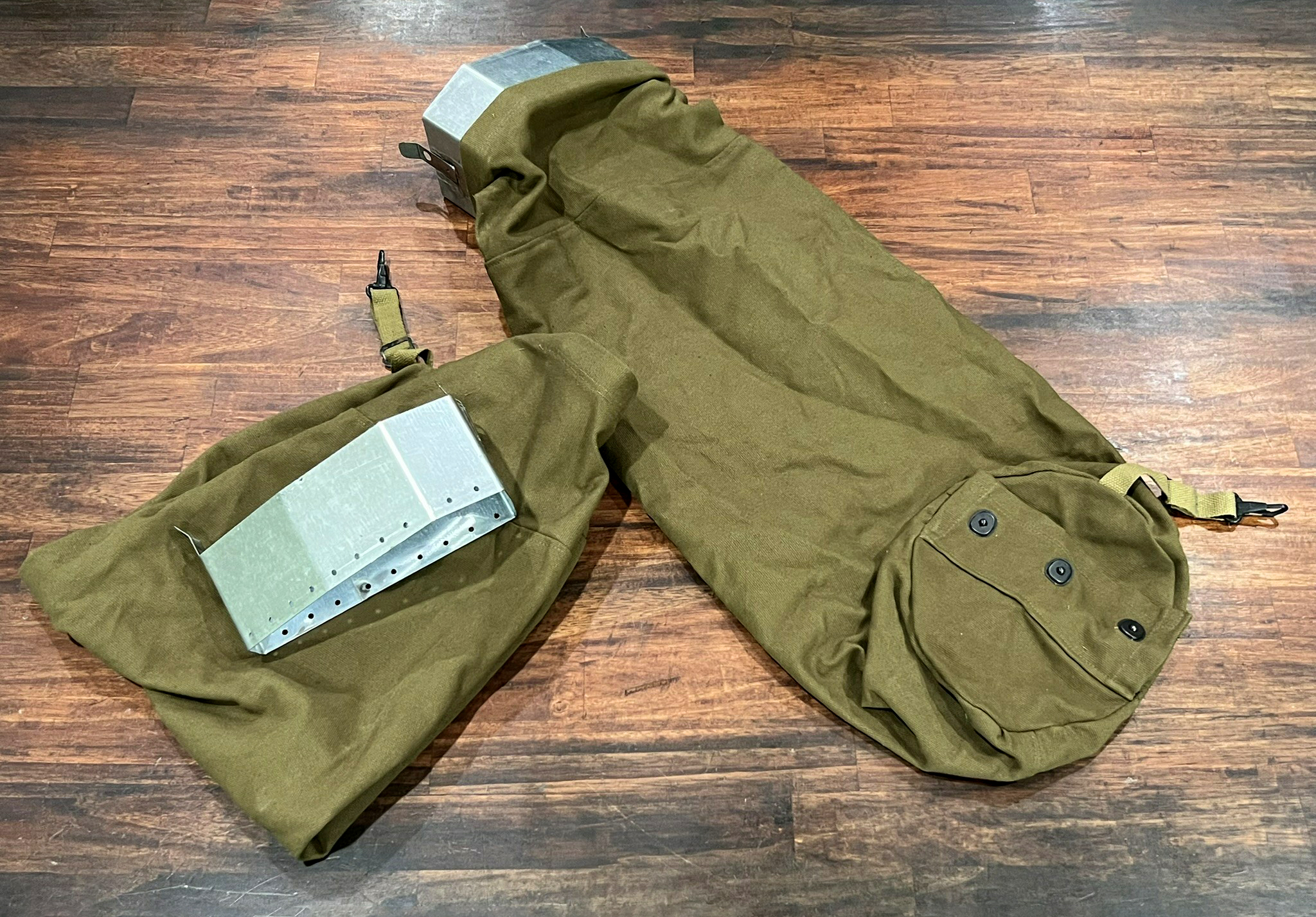 Something rarely seen on restored examples, Sperry and Martin Upper Turrets actually came equipped with bags to catch the empty shells when fired. The bags clipped to a hopper underneath the gun cradle and featured flaps at the bottom for the ground crew to dump their contents upon return. Colin sent out bags with the upper brackets separate so that we can assure proper fit when we are ready to install them.