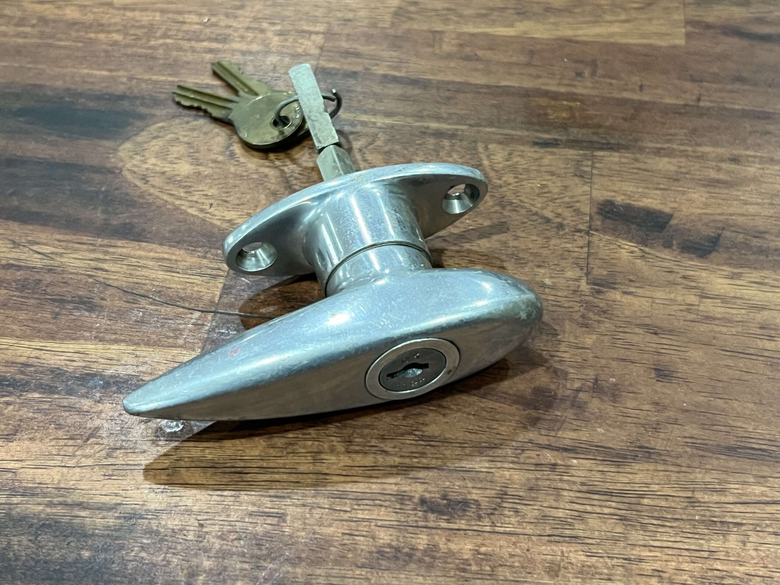 The newly arrived door latch assembly for the B-17’s nose hatch.